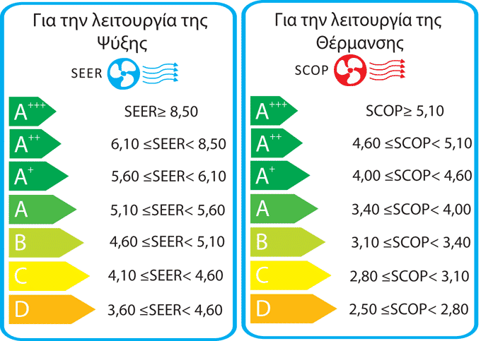 Επιπλέον υπάρχουν οι δείκτες SEER και SCOP, οι οποίοι απεικονίζουν ρεαλιστικότερα την πραγματική ενεργειακή απόδοση των κλιματιστικών.
